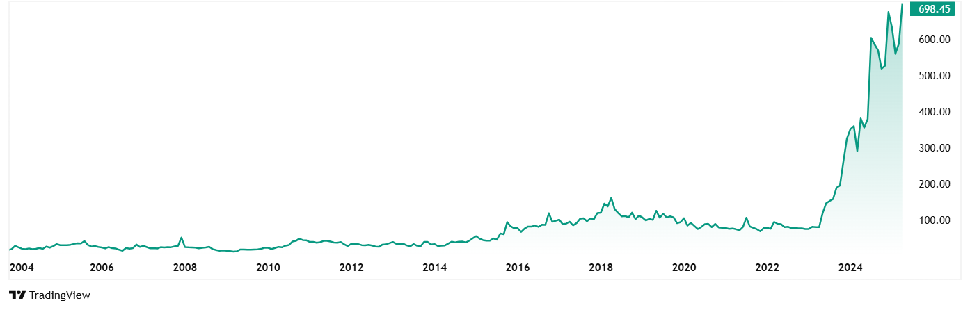 Ecoplast的股价从2020年4月的83卢比跃升至目前的698卢比(截至17Th 2025年4月),5年内增长了740%。