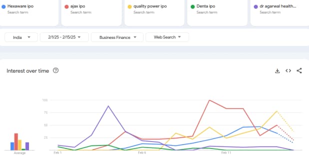 2025年2月,主板和中小型企业的一连串IPO开始了。从技术和建筑到医疗保健和基础设施,各种各样的公司都为本月竞标开辟了问题。根据Google趋势,主板细分市场中搜索最多的IPO是Ajax工程,六角形技术和优质的电力电气设备。这三家公司本月开设了竞标。