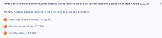 ICICI银行的网站现在指出,在地铁或城市地点运营储蓄帐户的客户将必须在其帐户中保持最低15,000卢比,以避免任何罚款。以前,这笔款项已远足至50,000卢比。