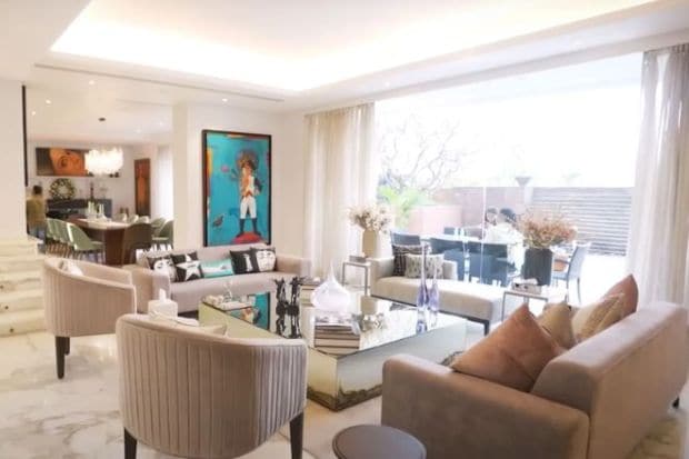 这些走廊看起来像是一个美术馆,衬有照片和精心策划的艺术品,这些艺术品绘制了Kapoor家族的个人和专业里程碑。在外面,一个私人景观花园和游泳池为休闲和冷藏提供了完美的背景。