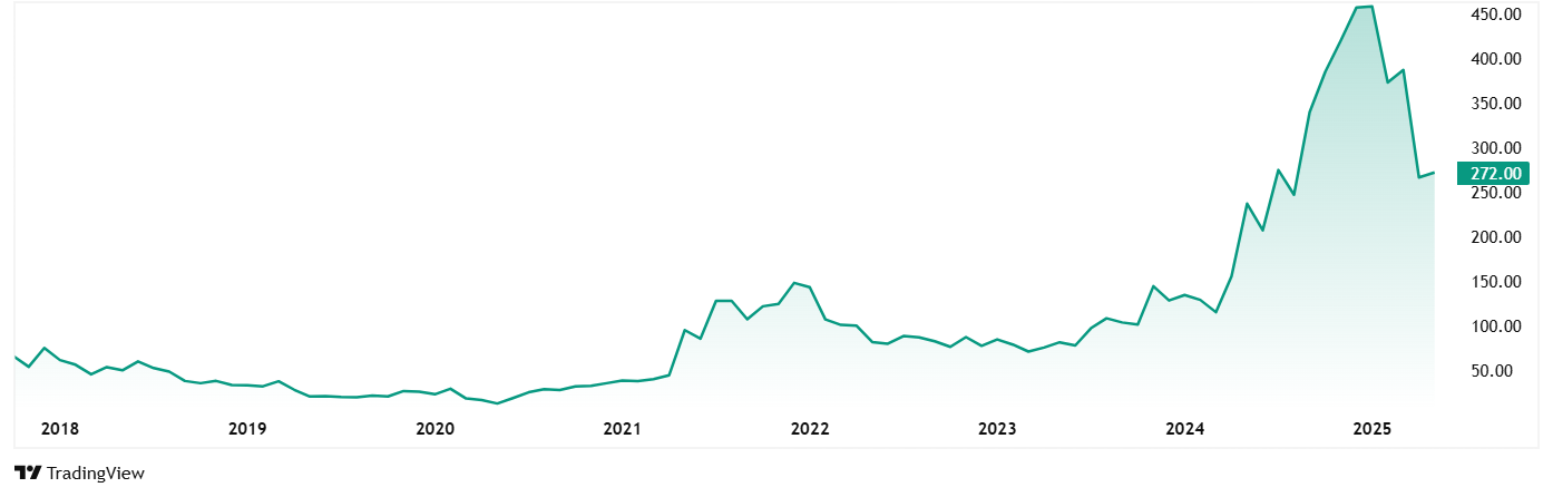 Iris Business Services Ltd的股价从2020年5月12日的五年卢比增长到目前的274卢比(截至28年,其价格为274卢比Th 2025年5月),这是2,183%的跃升。