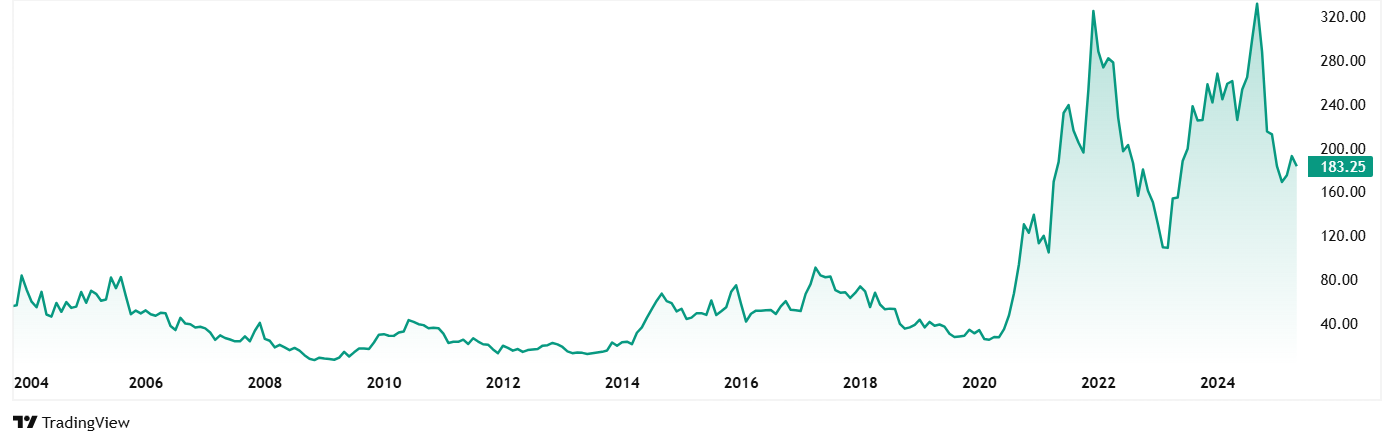 以目前的价格,该股票的交易价格比370卢比的历史最高点折价超过50%。