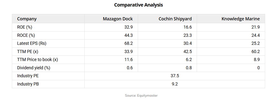 多年来,Mazagon码头以廉价的价格交易,其收益率约为10-12倍,因为该公司没有现在拥有的那种增长可见性和订单书。过去,它的利润率和回报率显着降低。