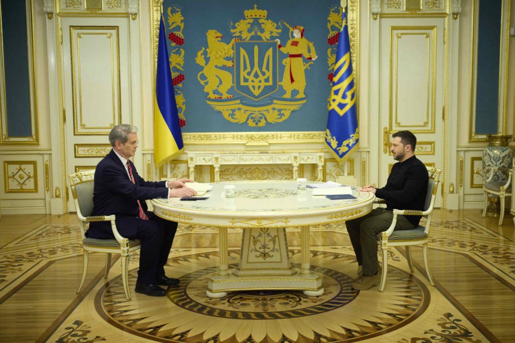 美国财政部长斯科特·贝森特与乌克兰总统弗拉基米尔·泽连斯基。图片来源:乌克兰总统办公室