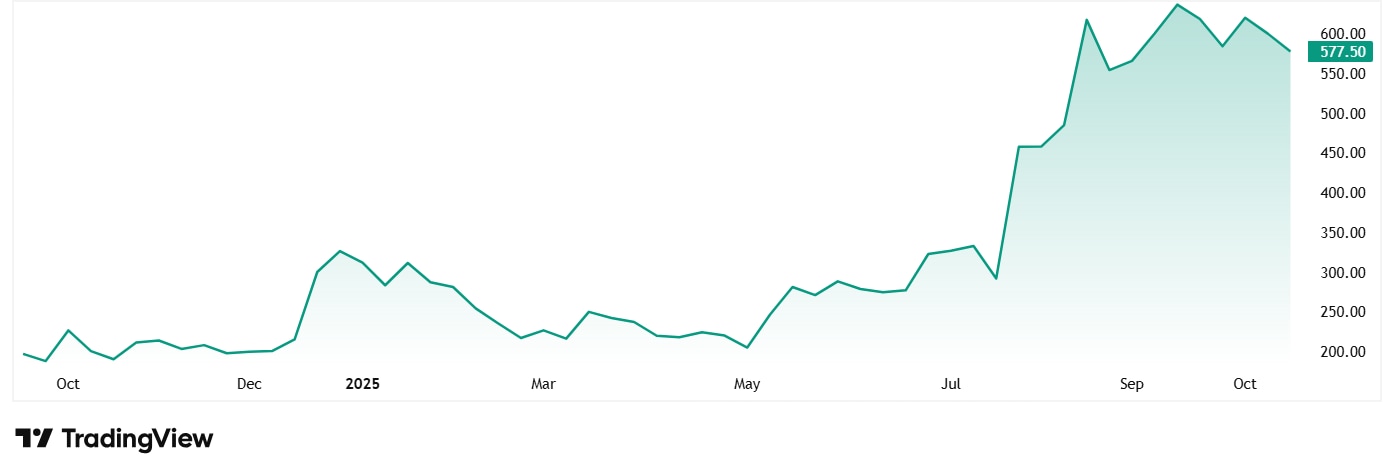 OSEL Devices Ltd 于 2024 年 9 月上市时的股价约为 208 卢比,截至 24 日th 2025 年 10 月,价格为 585 卢比,在短短一年多的时间里上涨了 181%。