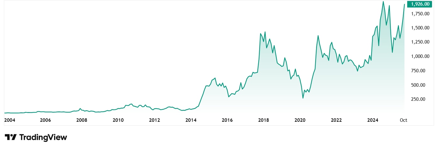 2020 年 10 月,IFB Industries Ltd 的股价约为 715 卢比,截至 24 日已上涨至 1,919 卢比th 2025 年 10 月,增幅为 168%。