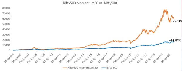 这些参数确保投资组合保持优化,重点关注 AMFI 定义的市值排名超过 250 家公司的小盘股,这些股票表现出强劲的动量特征。