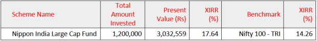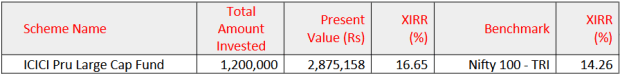 该基金每月每月一口10,000卢比,即,总投资为120万卢比(M),现在价值为3.03 m卢比。