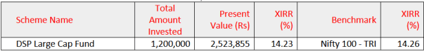 在过去的10年中,该基金的XIRR或SIP回报率为14.23%,而Nifty 100 – TRI(截至2025年9月8日),为14.26%。
